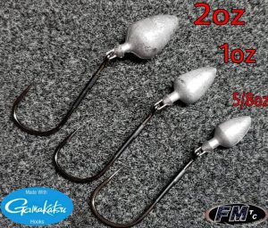 Now, the flippin style jigs are also custom designed and feature Gamakatsu hooks, custom shaped head with a skirt collar. The Monster Crasher, Infiltrator, and Wedding Crasher all have a unique connection point that allows the hook to swing freely and create more action in all your baits. FMTC also offers several other custom jigs to include football and underspin style swim jigs.